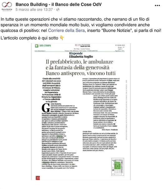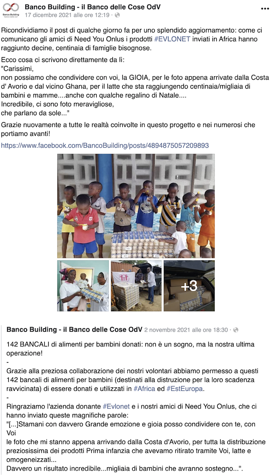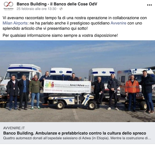 I materiali donati alle opere no profit hanno raggiunto diverse nazioni.